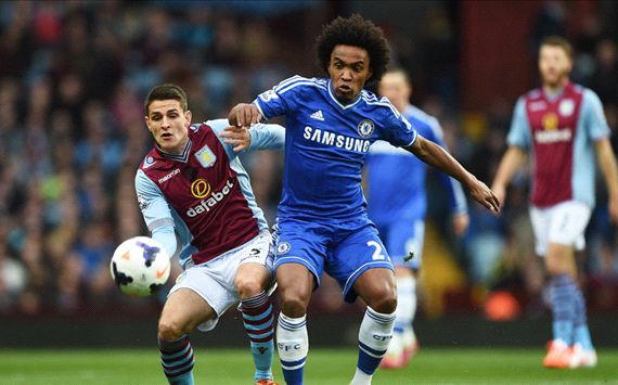 Sementara itu peluang terbaik Aston Villa tercipta di menit ke-39, Cristian Benteke melepaskan tendangan voli dari luar kotak penalti, dan nyaris tercipta gol sensasional seandainya arahnya tidak melenceng tipis dari gawang yang dikawal Petr Cech.